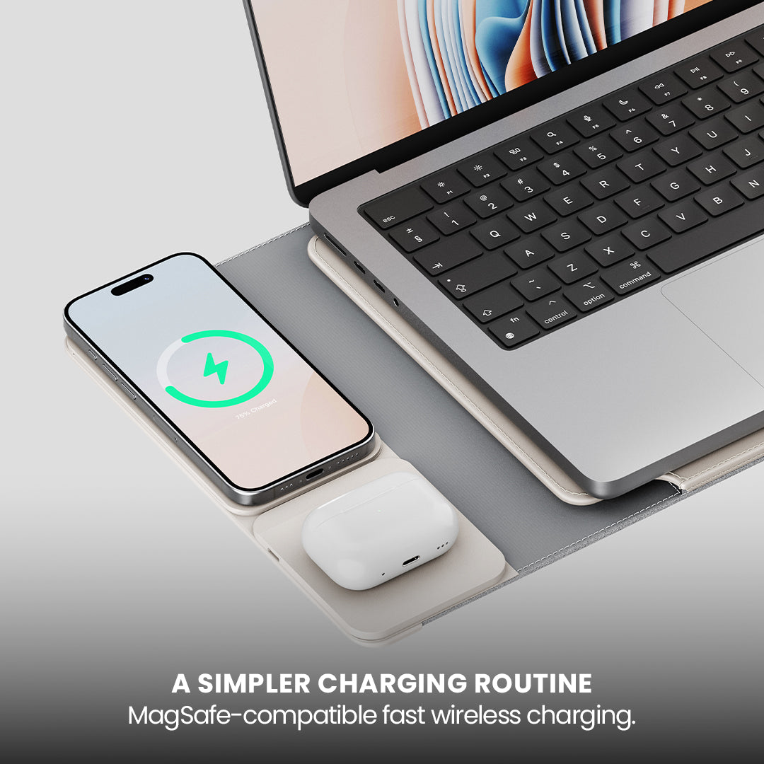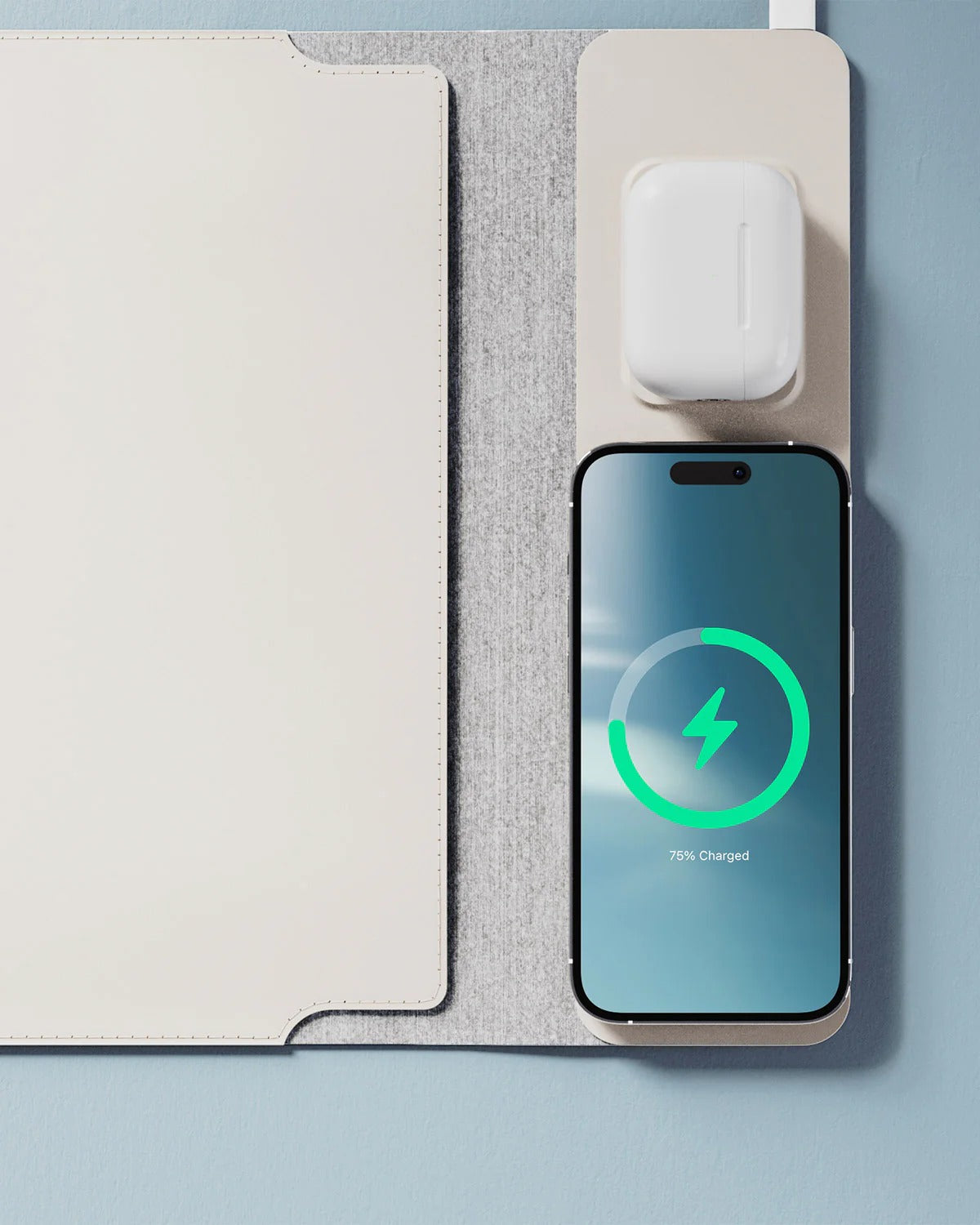 More than just protection, it transforms any surface into a clean, organized workspace while wirelessly powering your devices wherever you go.