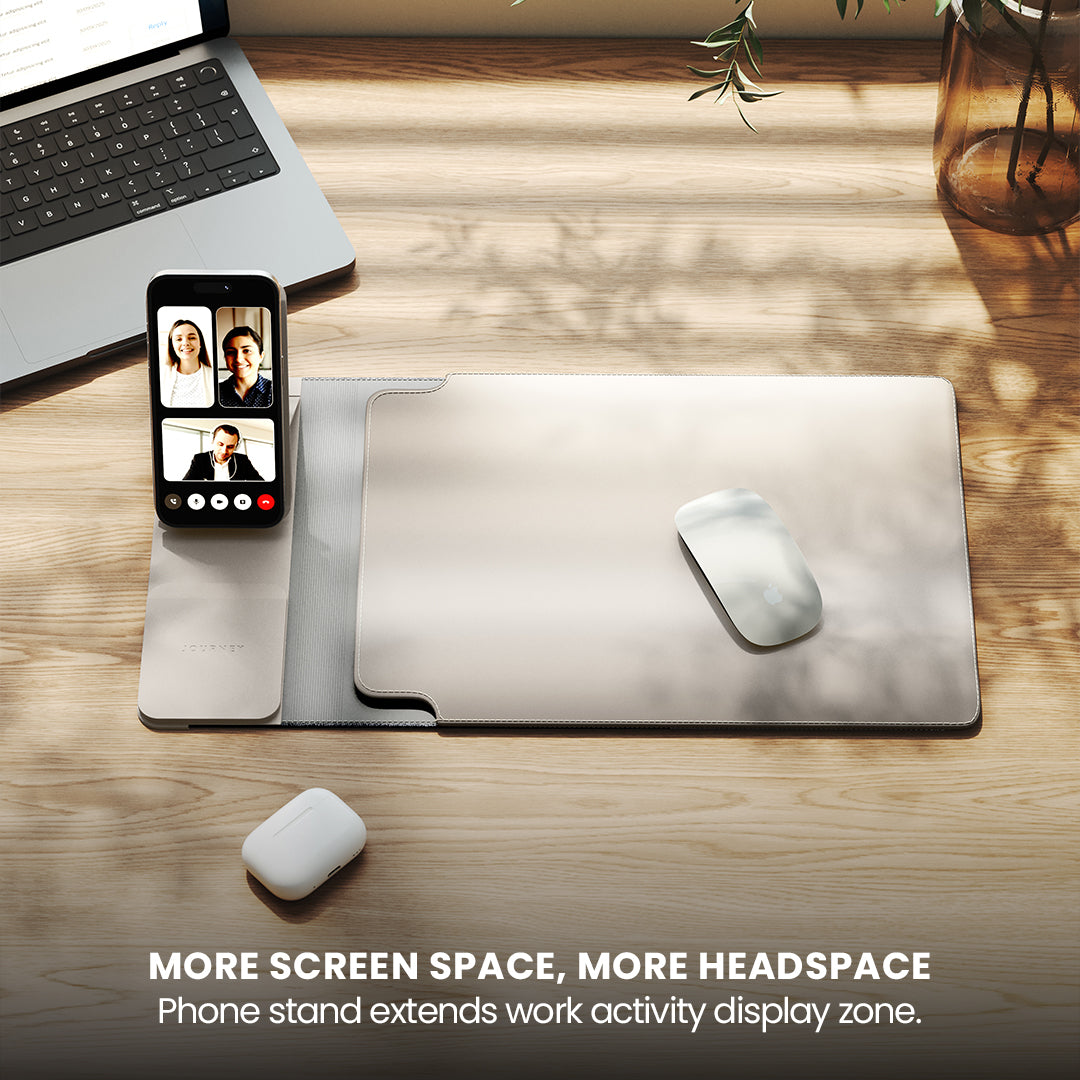 - ChargeSleeve™ With Stand — Adds an integrated lift-stand for ergonomic typing and improved airflow.
