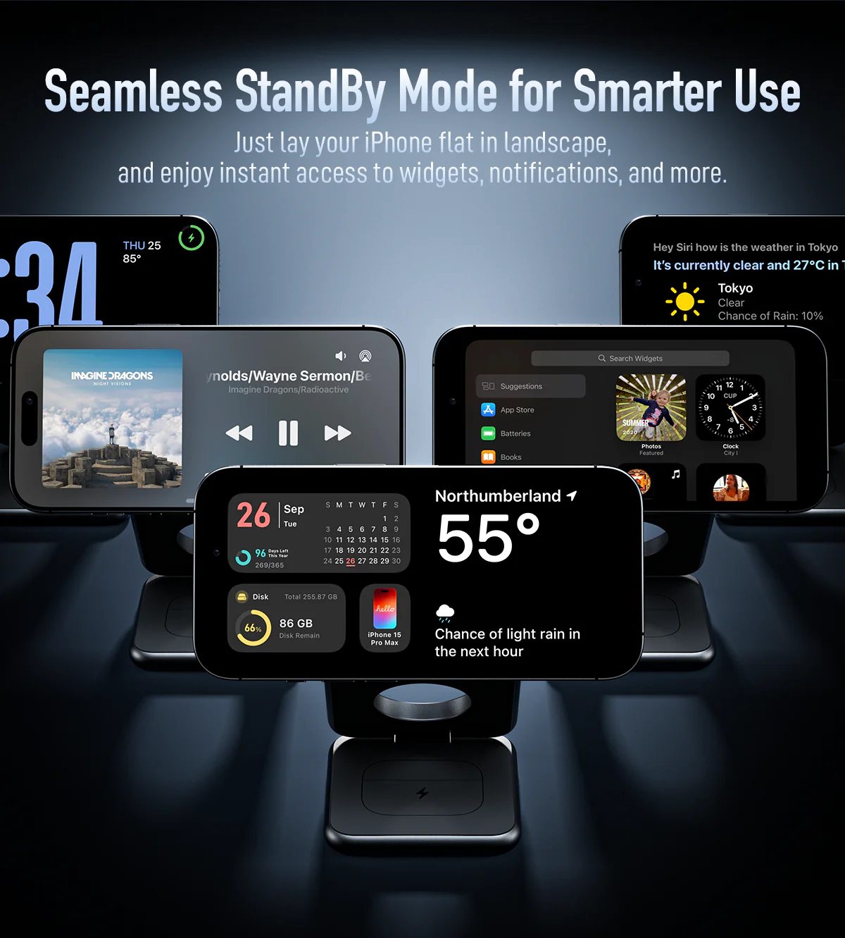 Flip your iPhone while charging to experience the all-new StandBy mode. You'll discover cool notification prompts, music playback, and interactions.