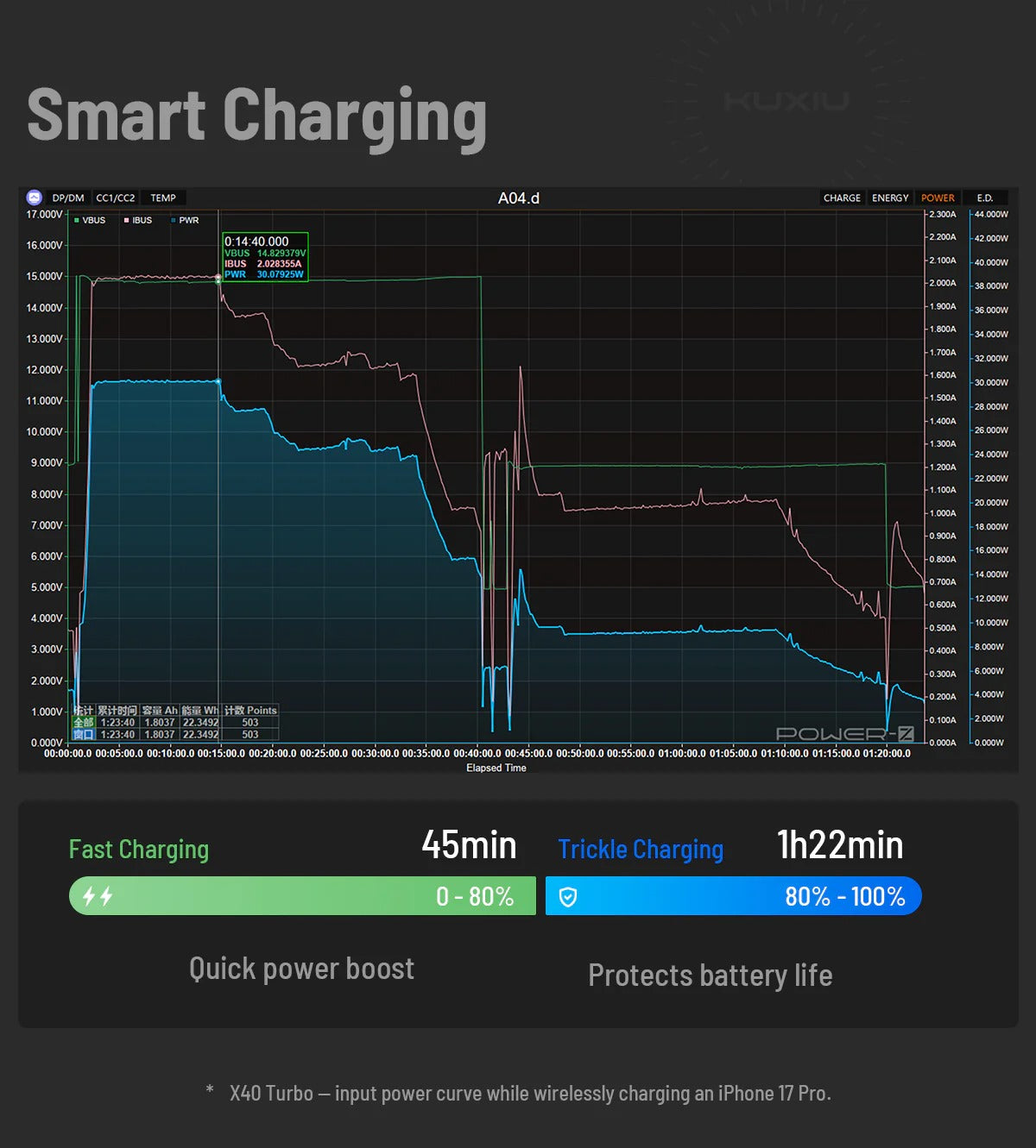 The Snapower OneBase 3-in-1 Wireless Charging Station features MagSafe and Qi2 wireless fast-charging technology. It delivers 15W wireless fast charging, the maximum power currently supported by iPhone, which is 2× faster than standard wireless charging.