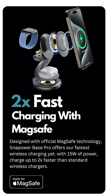 The Snapower's One Base pro: The seamless answer to wireless charging compatibility. Break free from iOS-exclusive constraints. This charger harmonizes with both iOS and Android systems, eliminating compatibility woes. Say goodbye to incompatible chargers, Snapower Base Pro powers up your devices, whether iPhone or Android, with ease. Streamline your charging with Snapower, the definitive wireless charger tailored for today's tech diversity.