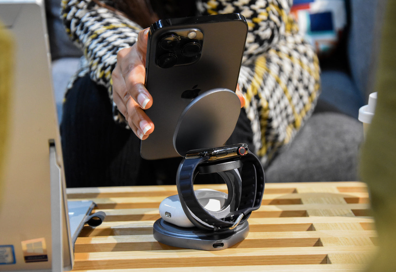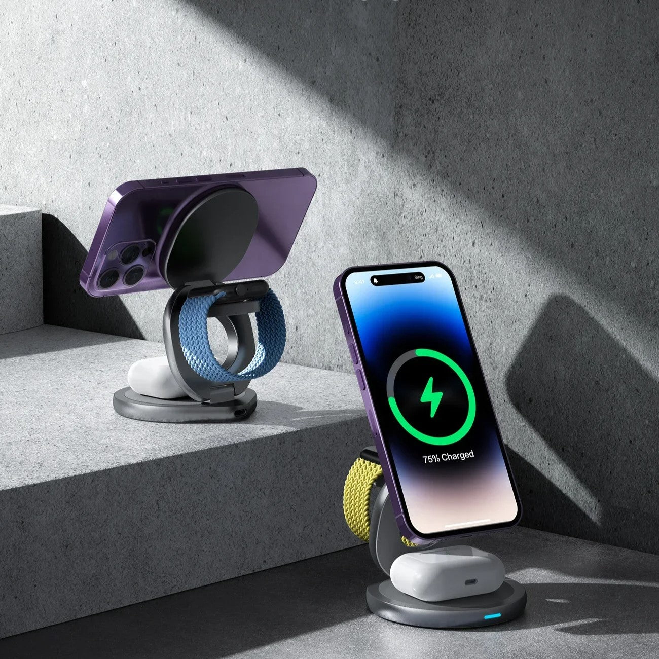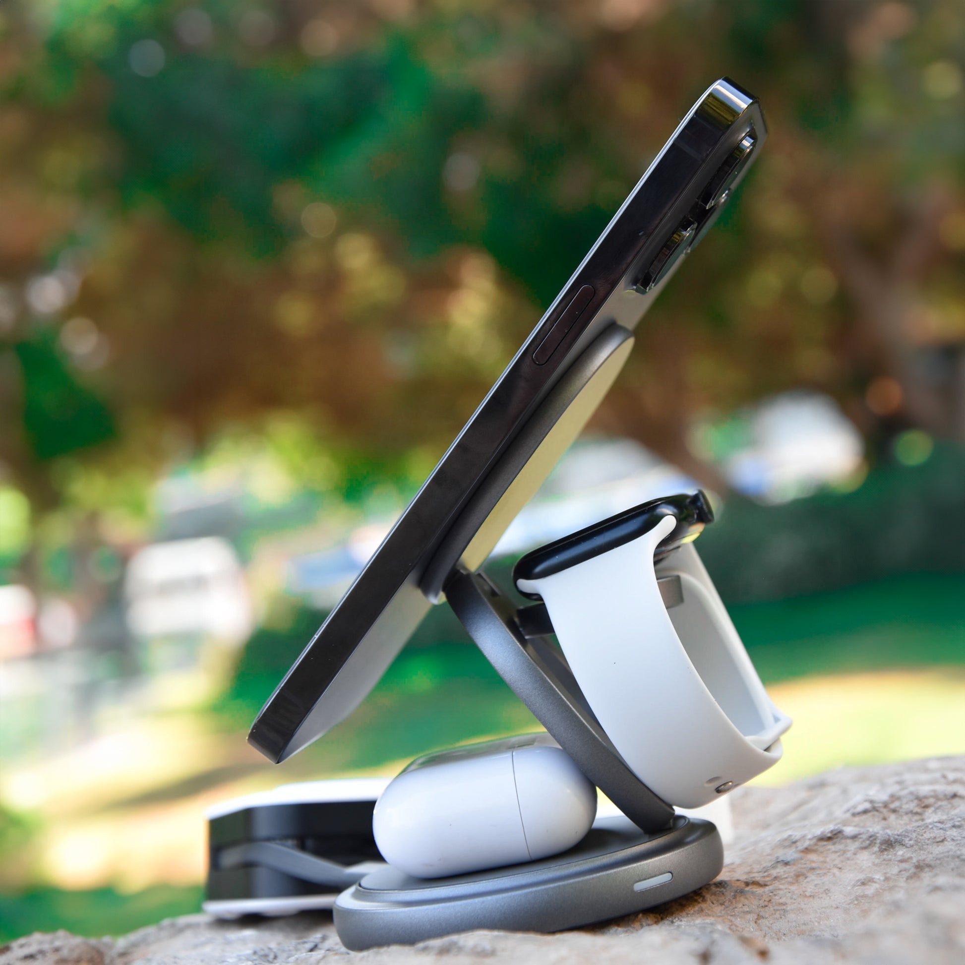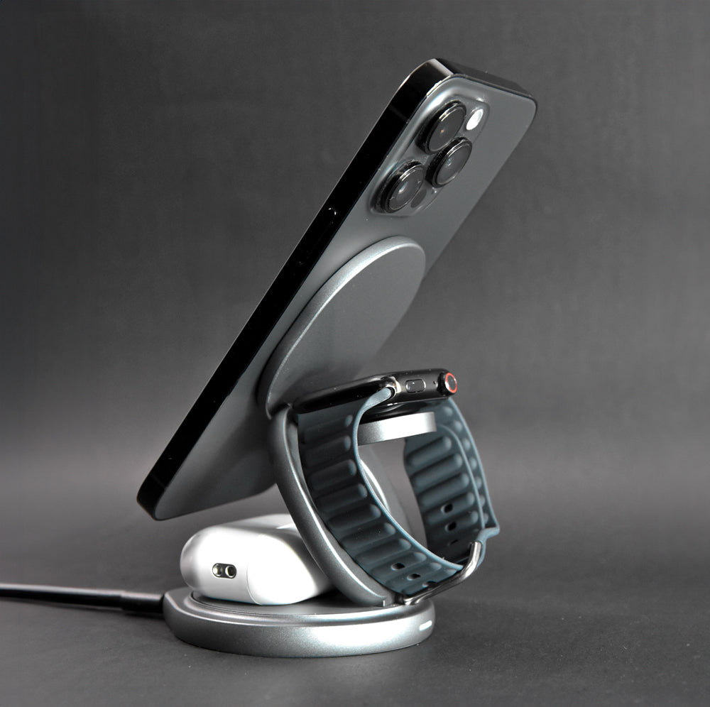 3-in-1 MagSafe chargerOfficial MFi MagSafe charging up to 15W Apple Watch Fast ChargerAirPods Qi charging spotsolid aluminum Alloy & CNC2.0m USB-C to USB-C cable included